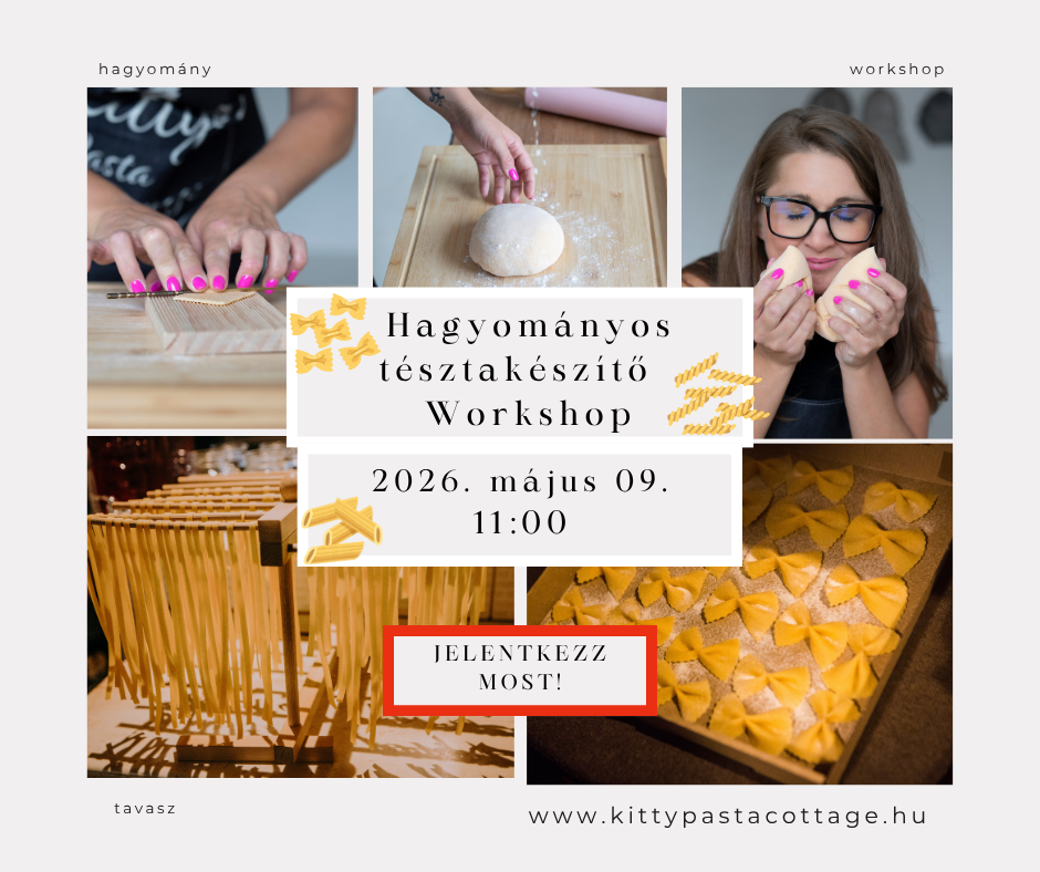 A házi tészta készítése egy régi, szerethető hagyomány, amely sok családban generációról generációra öröklődött. Ezen a workshopon visszatérünk az alapokhoz, és együtt készítjük el a klasszikus, 10 tojásos házi tésztát, amelynek íze és állaga egészen más élményt ad, mint a bolti változatok.
